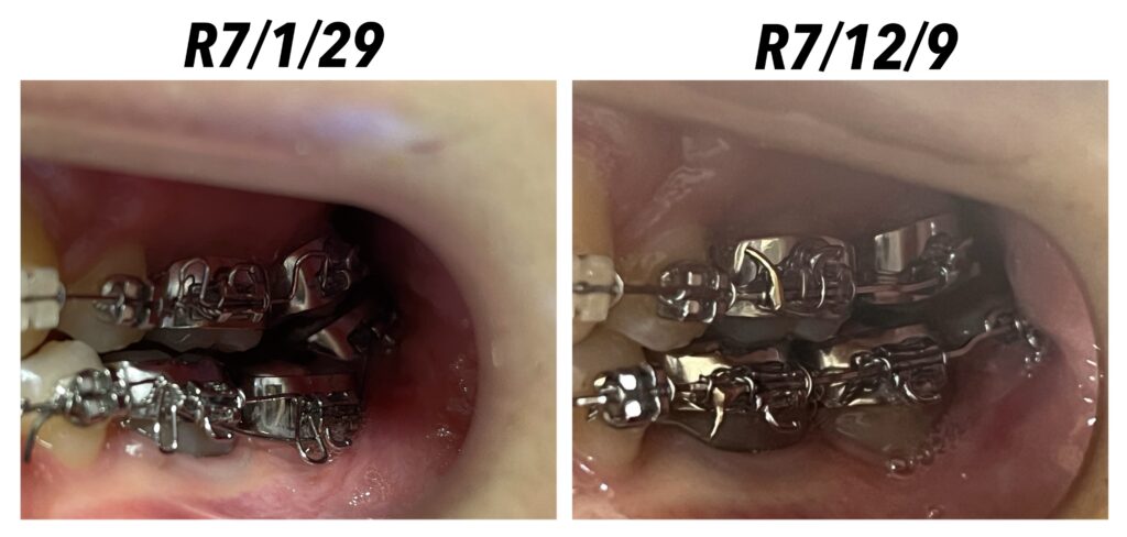 左下第二大臼歯と第三大臼歯のステップは、最初と比べると改善されたのが分かります🥹
